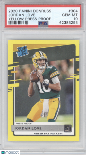 2020 Panini Donruss Rated Rookie Jordan Love #304 Press Proof Yellow PSA 10