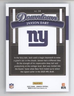 2025 Panini Donruss Football Jaxson Dart #14 Downtown RC