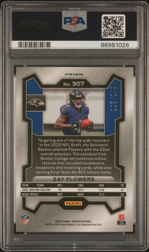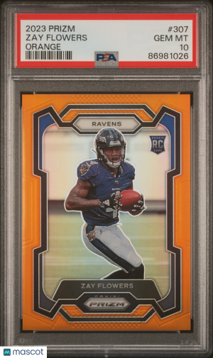 2023 Panini Prizm Football Zay Flowers #307 Orange 205/249 RC PSA 10