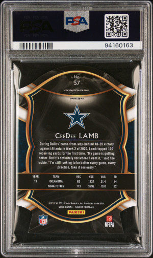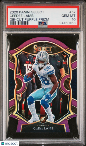 2020 Panini Select Football Ceedee Lamb #57 Die-Cut Purple Prizm RC PSA 10