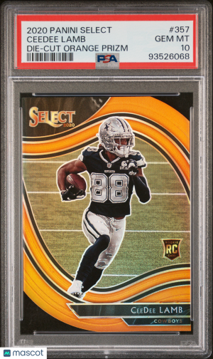 2020 Panini Select Football Ceedee Lamb #357 Die-Cut Orange Prizm RC PSA 10