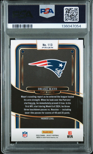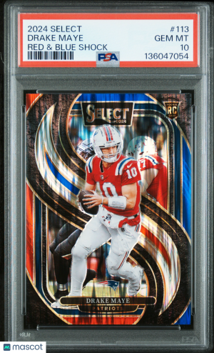 2024 Panini Select Football Drake Maye #113 Red & Blue Shock RC PSA 10