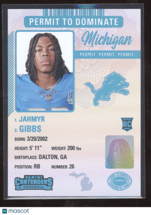 2023 Panini Contenders Football Permit to Dominate Jahmyr Gibbs #13 RC