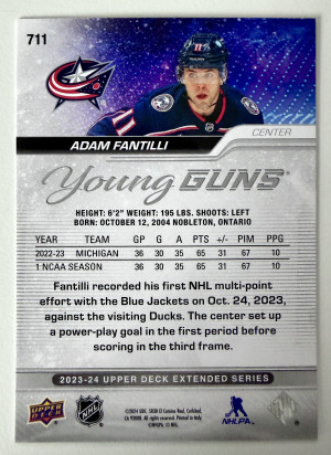 2023 Upper Deck Adam Fantilli Outburst Silver Young Guns Rookie