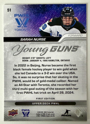2024 Upper Deck PWHL Young Guns Sarah Nurse Silver Outburst Rookie First Edition