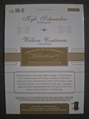 2017 Panini Flawless Dual Game Used Patch Kyle Schwarber & Willson Contreras 06/20!!!