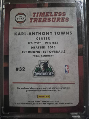 2015-2016 Panini Timeless Treasures Karl Anthony Towns RPA 62/75