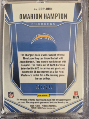 2025 Panini Phoenix Omarion Hampton 2 Patch RPA 134/249!!