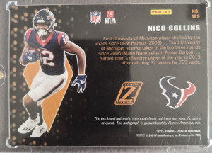 2021 Panini Zenith Nico Collins 2 Patch RPA 09/50