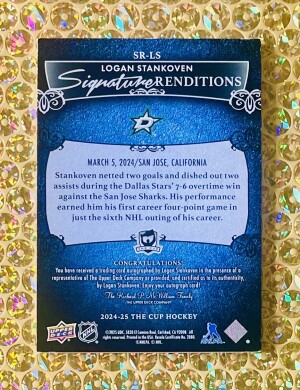 2024-25 UD The Cup #SR-LS Logan Stankoven Signature Renditions RC Blue Ink