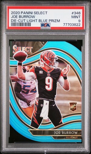 2020 Panini Select Joe Burrow Die-Cut Light Blue Prizm