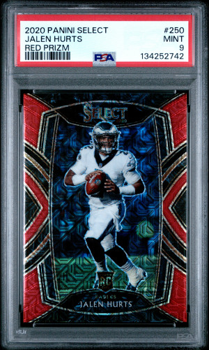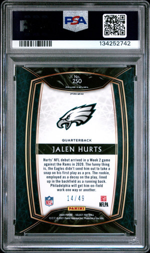 2020 Panini Select 🔴🔥Red Prizm Mojo Jalen Hurts RC #14/49 SP Club Level PSA 9