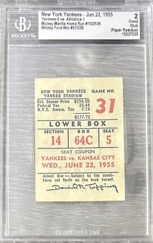 1955 Ny Yankees Mickey Mantle Hr 102/536 Ticket Whitey Ford Win 51/236 Bas 2
