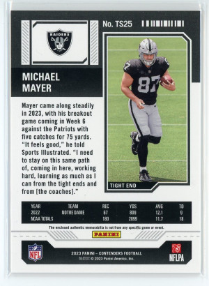 2023 Panini Contenders #TS25 Michael Mayer Rookie Ticket Swatches