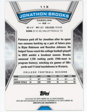 2024 Topps Resurgence #113 Jonathon Brooks Blue and Orange Spark Rookie