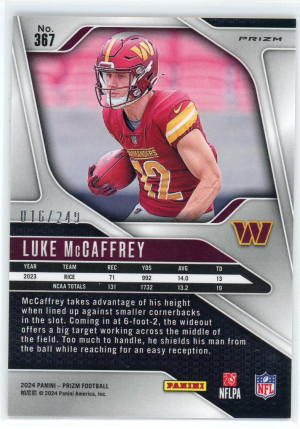 2024 Panini Prizm #367 Luke McCaffrey Rookie Orange /249
