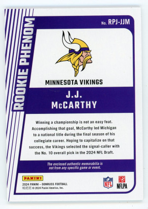 2024 Donruss J.J. McCarthy Rookie Phenom Jersey #RPJ-JJM