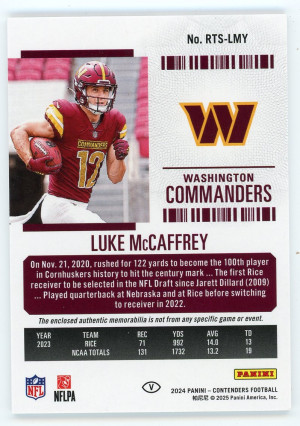 2024 Contenders Luke McCaffrey Rookie Ticket Jersey
