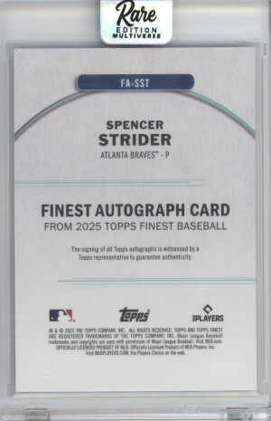 2025 Topps Finest Autographs Spencer Strider #FA-SST Sky Blue Refractor 113/150