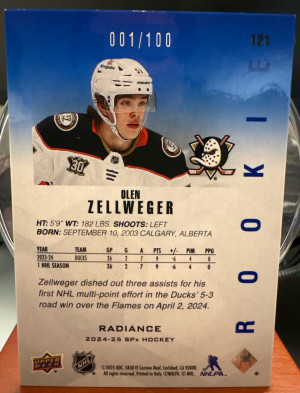 Olen Zellweger, 2024-25 SPx, Rookie Radiance /100