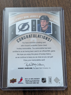 Vincent Lecavalier Winning Materials - 2011-12 SPX - Game Used Dual Jersey