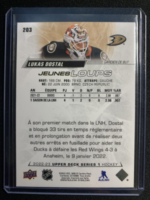 2022-23 UPPER DECK LUKAS DOSTAL YOUNG GUNS FRENCH