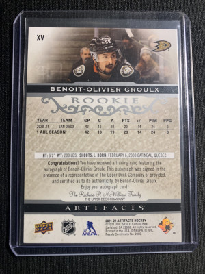 2021-22 ARTIFACTS BENOIT-OLIVIER GROULX ROOKIE AUTO
