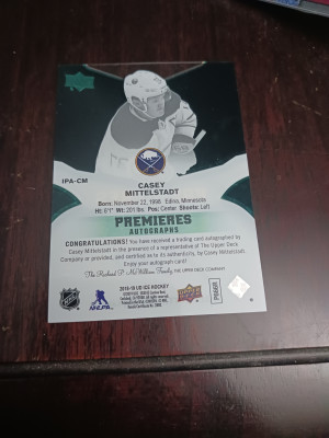 2018-19 upper deck ice casey mittelstadt ice premieres auto /99