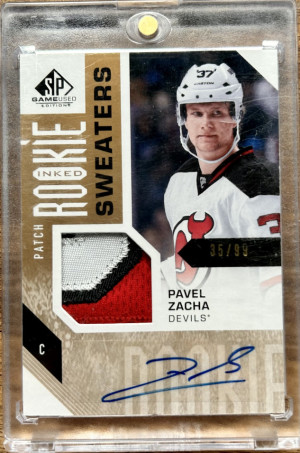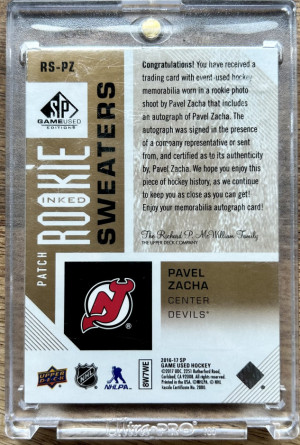 2016 SP Game Used Inked Sweaters /99 Pavel Zacha Rookie Patch Auto RC