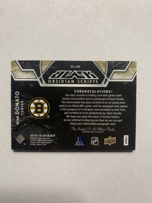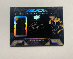 2018-19 SPx UD Black Obsidian Material Scripts 17/49 Ryan Donato Rookie Auto RC