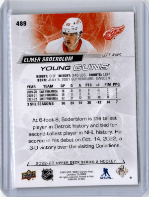2022-23 UD Series 2 Base Young Guns #489 Elmer Soderblom Detroit Red Wings