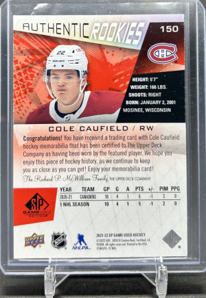 2021-22 SP Game Used Cole Caufield Authentic Rookies Jersey #150