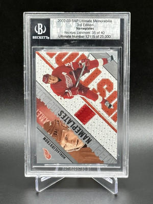 2002-03 Be A Pro Ultimate Memorabilia 3rd Edition Nicklas Lidstrom Nameplates 35 of 40 (SN#: 12115/25000)