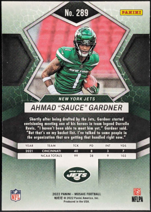 2022 Panini Mosaic #289 Sauce Gardner New York Jets RC [105|289]
