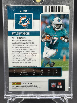 2021 Panini Contenders Optic Jaylen Waddle Rookie Ticket Auto MIAMI #106 /75