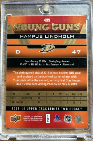 2013-14 Upper Deck Hampus Lindholm Young Guns Exclusive /100