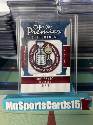 2008-09 UD O-Pee-Chee Premier Joe Sakic Premier Stitchings Hart Trophy and Stanley Cup Winner 05/75 #PS-JS