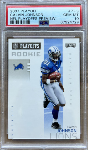 2007 PLAYOFF NFL PLAYOFFS PREVIEW #P-3 CALVIN JOHNSON RC HOF PSA 10