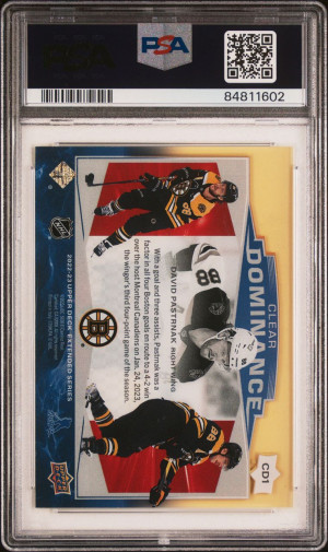 2022 Upper Deck Extended Series Clear Dominance Gold 23/25 David Pastrnak PSA 9