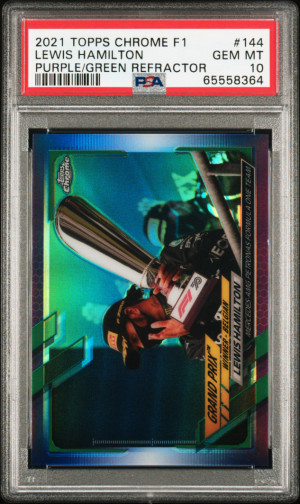 2021 Topps Chrome Formula 1 F1 Purple/Green Refractor #144 LEWIS HAMILTON PSA 10