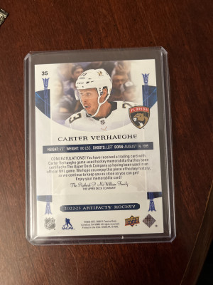 22-23 UD Artifacts Carter Verhaeghe Dual Relic 195/249