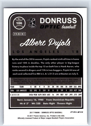 2017 Donruss Optic #106 Albert Pujols Purple