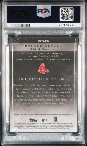 Rafael Devers 2018 Topps Inception Silver Signatures RC /90 PSA 8