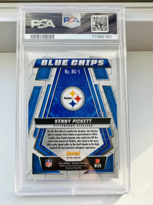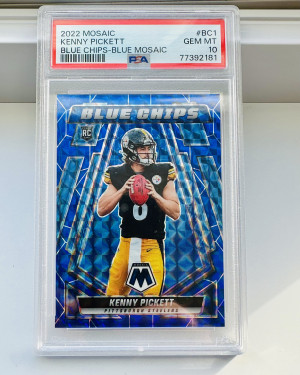 2022 Panini Mosaic Kenny Pickett Rookie Blue Chips Blue /99 PSA 10