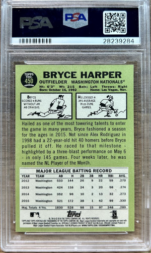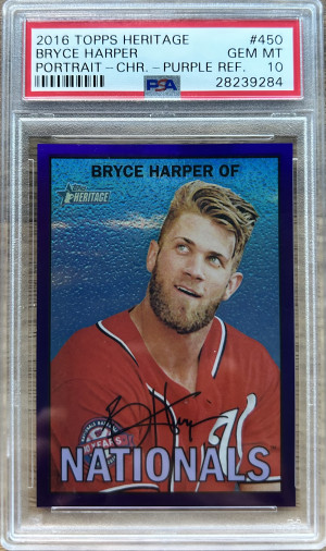2016 Topps Heritage Chrome Purple Refractor #450 Bryce Harper Nationals PSA 10