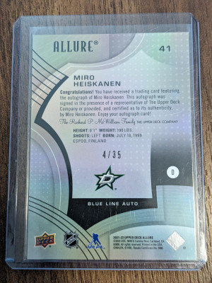 Miro Heiskanen Blue Line Auto 4 /35 2021-2022 upper deck allure Dallas Stars
