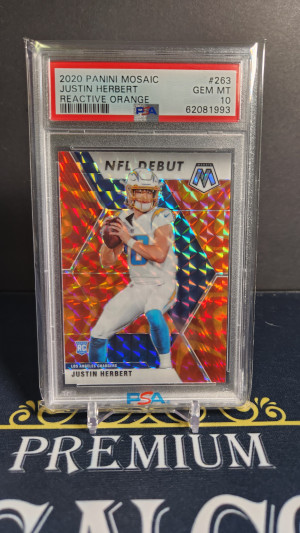 2020 Mosaic Justin Herbert Orange Reactive NFL Debut PSA 10