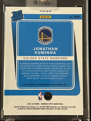 2021-22 Donruss Optic Jonathan Kuminga Rated Rookie Holo On Card Auto