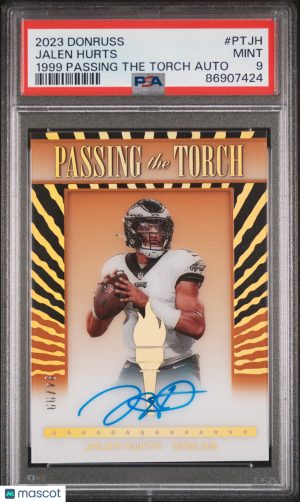 2023 Panini Donruss 1999 Passing The Torch Autographs Jalen Hurts #PTJH PSA 9