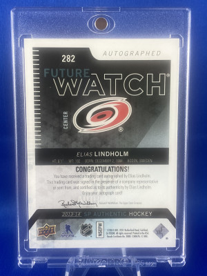 Elias Lindholm 2013-14 SP Authentic Future Watch Auto 200/999 RC NM-MT